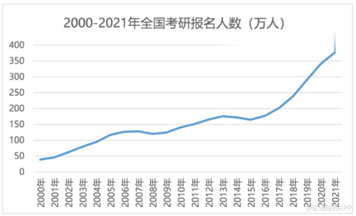 与此同时,和发达国家经济起飞时所需专业技术人才比例7%的标准相比,国内专业技术人才缺口达3000万。因此在就业压力下,国内研究生扩招属于大势所趋,报考人数也已从2016年的177万人增至2021年的377万人。