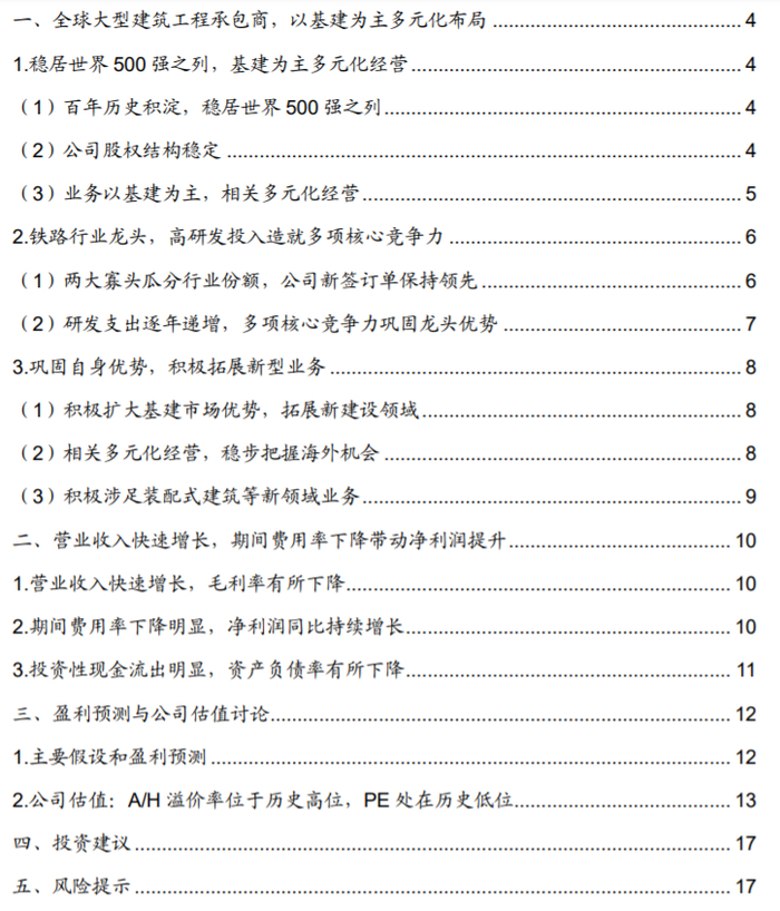 一、全球大型建筑工程承包商,以基建为主多元化布局