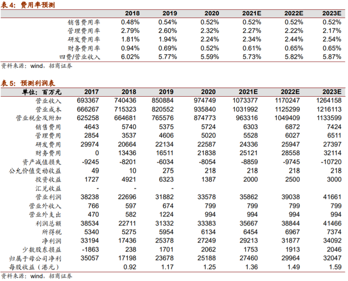 假设二:毛利率方面,预计2021年到2023年总体稳中有增。