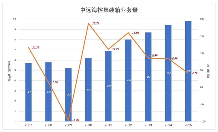 与干散货业务完全不同,中国远洋集装箱运输总体呈持续增长态势。
