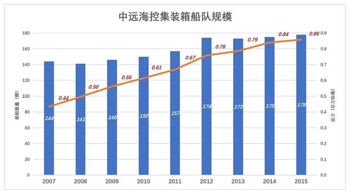 2018年8月,要约收购东方海外国际(7月1日起并表),运力实现跨越式发展,年末自营集装箱舰队运力大幅增至276万TEU,较2007年末增加52.5%。