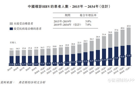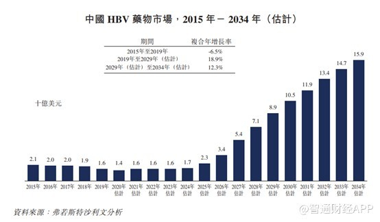 根据弗若斯特沙利文的资料,随着创新型HBV药物(尤其是可提供功能性治愈的药物)预期将在2024年开始进入中国市场,并预期该市场将从2019年的16亿美元大幅增长至2029年的89亿美元,期间内的复合年增长率为18.9%。