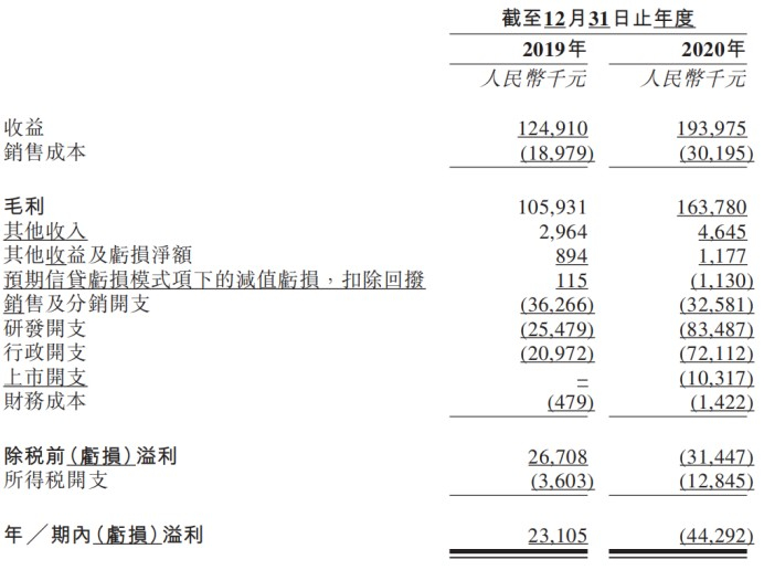 招股书显示,该公司于PTA球囊产品及DCB产品推出后开始确认收益。于2019年及2020年, 该公司的销售收益分别为1.25亿元及1.94亿元;于2019年录得溢利2310.5万元,于2020年录得亏损4429.2万元。该公司的研发开支由2019年的2547.9万元增加至2020年的8348.7万元,主要由于因进行临床前研究及临床试验而令产生的第三方承包开支、在研产品的持续开发导致耗材、在研产品的开发导致第三方谘询服务产生的顾问费等。