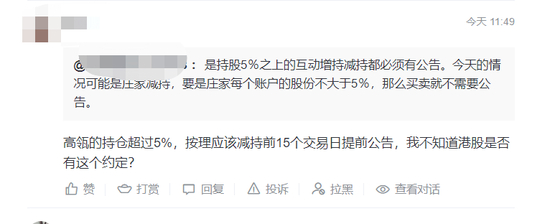 3宗大宗交易之下,抛售2.39亿股,套现25.6亿港元,公司股价遭遇断头铡,直接跌了16%。对此,股民们纷纷认为,高瓴资本或违规减持。股民表示,“持股5%以上的互动增减持必须有公告,高瓴持仓超过5%,按理应该提前15个交易日提前公告,不知港股是否这个规定”。
