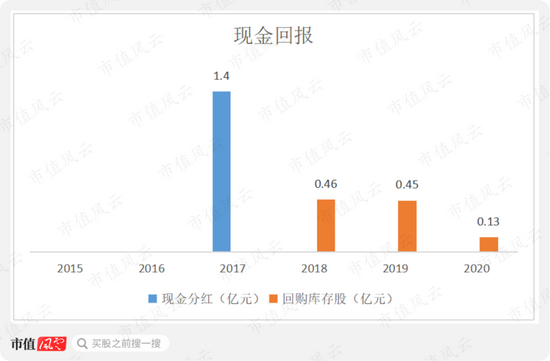 2015年上市以来,公司仅2017年进行现金分红1.4亿,2018-20年回购库存股金额分别为0.46亿、0.45亿和0.13亿,分红和回购合计2.44亿,占累计净利润的仅5%左右,分红力度非常低。