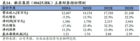 我们的观点:敏实集团具备全球布局及管理能力的汽车零部件公司,拥有稳定且庞大的客户群,成功进入国际一流主机厂供应体系。公司电池盒业务快速推进,新产品订单持续增长,为未来业绩持续增长提供强有力的支撑。我们预计公司2021-2023年收入分别为141.54亿元、173.18亿元、211.68亿元,归母净利润分别为17.50亿元,23.15亿元,29.44亿元,分别同比增长25.4%、32.2%、27.2%。我们给予公司2021年25倍PE,相当于目标价46.02港元,调升至“买入”评级。