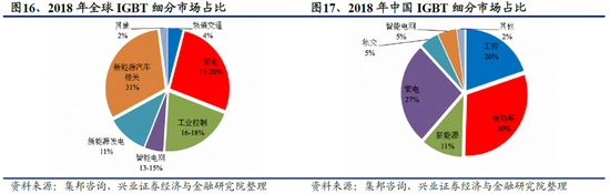 IGBT是电力电子重要器件,在我国,按照应用领域划分,新能源汽车是IGBT应用最大的领域,占比为30%。其他重要领域中,家电占比27%,工业领域占比20%。相对于工业IGBT模块,电动车对IGBT的耐高温、电气可靠性、强振动下稳定性等指标更为看重,在车辆启停、电机散热、芯片抗震、功率密度等诸多方面提出了技术难点。