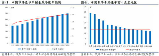 中长期豪华车渗透率有望达到20%,未来十年销量复合增速有望达到6%。我们认为,未来随着低线城市居民消费进一步升级以及豪华车价格的继续下探,中国市场中长期豪华车渗透率有望达到20%。假设豪华车渗透率在2030年达到20%,乘用车市场销量恢复到2017年水平(约2500万辆),则豪华车销量有望在2030年达到500万辆,对应2020-2030年复合增速约为6%。