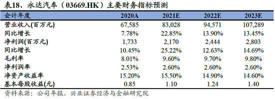 我们的观点:短期汽车行业受到芯片短缺影响,豪华品牌厂商在芯片获取方面拥有更强的话语权,受到影响相对较小。此外,供给偏紧有利于带来新车销售折扣的持续回收,经销商盈利能力有望提升。永达汽车是宝马和保时捷最大经销商,公司大力发展二手车和新能源业务,整体经营效率持续改善,后续剥离汽车金融业务有望改善公司资产负债结构。长期来看我国豪华车渗透率还有提升空间,后市场规模也有望增长。我们预计公司2021-2023年收入分别为830.28亿元、945.71亿元、1072.89亿元,利润分别21.70亿元、24.44亿元、28.03亿元,给予目标价17.07港元,相当于13倍2021年PE,维持“审慎增持”评级。