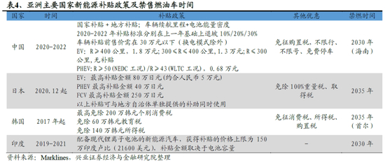 日本:补贴提升,电动化进程加速,2035年禁售燃油车。2021年1月,在日本第204届例行国会上,日本首相菅义伟表示,到2035年日本销售新车100%将为电动化车辆。此外,日本经济产业省宣布将纯电动汽车最高补贴金额由40万日元提升至80万日元(约合人民币5万元),插电式混合动力车最高补贴金额由20万日元增至40万日元,燃料电池车最高补贴金额由225万日元增至250万日元。2021年2月起日本各中央政府部门及其所属机构将仅采购电动化车辆。在此背景下,我们预计日本新能源车销量将迎来快速增长。