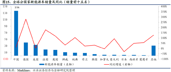 分国家来看,欧洲各国新能源车销量增速最高,中国次之,美国增速较低,欧洲多国新能源车渗透率已达双位数。2020年,德国、法国、英国、瑞典、意大利为销量增速最快的五个国家,分别实现新能源车销量40.5、19.1、18.0、9.0、2.9万辆,分别同比增长278.8%、177.8%、118.7%、103.9%和94.0%。挪威、瑞典、荷兰新能源车渗透率已分别达到58.3%、27.2%和23.5%。德国、葡萄牙、英国、法国渗透率分别为12.6%、11.7%、9.3%和9.1%。