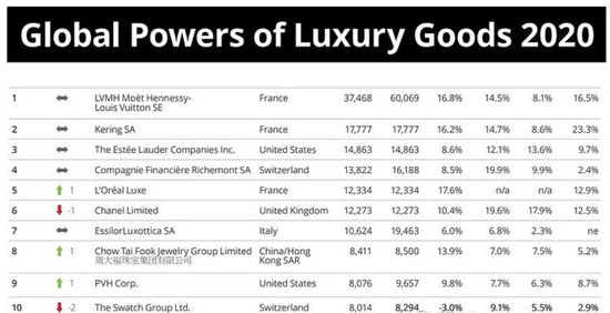 周大福这个品牌想必大家都听过。但如果告诉你它现在营收已超爱马仕,跻身奢侈品全球前十名,是不是还是很震惊?根据德勤2020奢侈品全球力量报告显示,2020年度全球100大奢侈品公司排行榜中,路威酩轩集团(LVMH)、开云集团、雅诗兰黛集团名列前三位,而周大福集团则以84.11亿美元的奢侈品销售额,超越爱马仕国际(77.04亿美元)位列第八位。