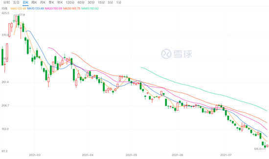 上周,在港股集体溃败的掩护下,快手股价持续低迷——从周一(7月26日)首次跌破发行价以来,快手股价持续震荡下行,周五(7月30日)收盘价110.1港元/股已经较最高点417.8港元/股跌去约73.7%,总市值从最高点1.738万亿港元一路跌至4580亿港元,蒸发近1.28万亿港元。