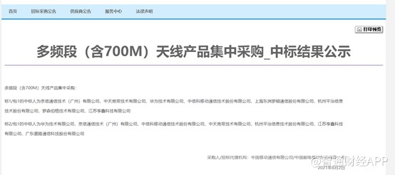 比如近期中国移动招标网公布了多频段(含700M)天线产品集中采购中标名额,京信通信便名列其中。并且按照其公布的中标份额数据看,京信通信分别在标包1(444天线和单4天线)、标包2(4448天线)中标份额18.85%、17.54%,数量分别达到11.31万面和20万面,在中标厂商中分别排名第一和第二,按照招标价总金额超过12亿元。