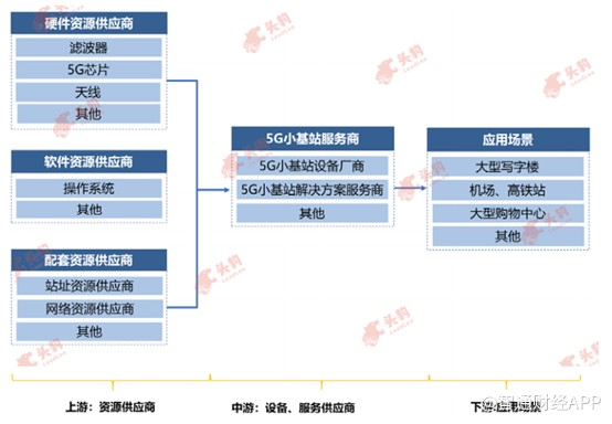 小基站产业链上游包含硬件资源供应商、软件资源供应商和配套资源供应商,中游包括5G小基站服务商,下游包含各种应用场景。相对于宏基站而言,小基站的技术壁垒较低,因此竞争也比较激烈。