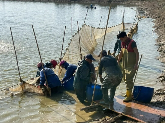赖美丽鱼塘,江团鱼捕捞现场