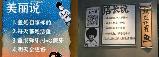 二者的slogan都像是一句普通的话,风格平实:“赖美丽”是“我只用活鱼”,“太二”是“酸菜比鱼好吃”。slogan不讲究押韵、比喻、对子,反复出现在门店的招牌和墙面上,要的就是洗脑效果。