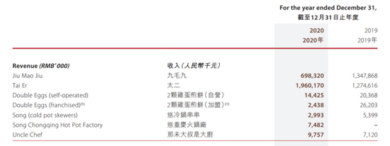 采访中有业内人士表示,从去年的财报中可见,在九毛九的多个副牌中,“太二”依然是耀眼的星。说得更加直白一些,“太二”成为集团中力挽狂澜的“兴奋剂”。然而,九毛九集团似乎目前也只有这唯一的一支“兴奋剂”——其它的副牌并没有明显崛起的趋势。比如“怂火锅”以及“怂冷锅串串”,加起来的营业数据大约是“太二”的一半;“2颗鸡蛋煎饼”也表现平平。