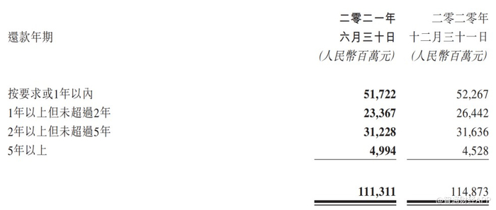 半年报显示,中国奥园的总借贷金额约为1113亿元。其中,偿还年期在两年以内的借款有不同程度下降,显示集团短期偿债压力持续下降。