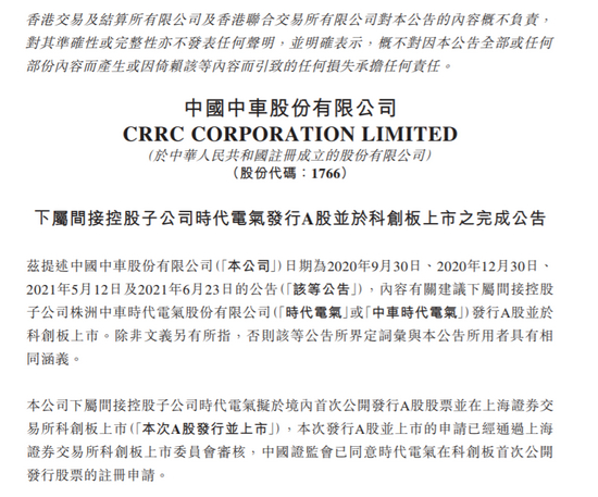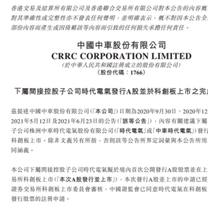 中国中车(601766)9月5日晚间发布公告,下属间接控股子公司株洲中车时代电气股份有限将于9月7日在上海证券交易所科创板上市。