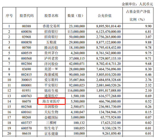 不仅如此,张坤管理的易方达优质企业基金持仓中,第十二位属于新入手的海吉亚医疗,持股约330万股,占比基金资产净值的2.39%。