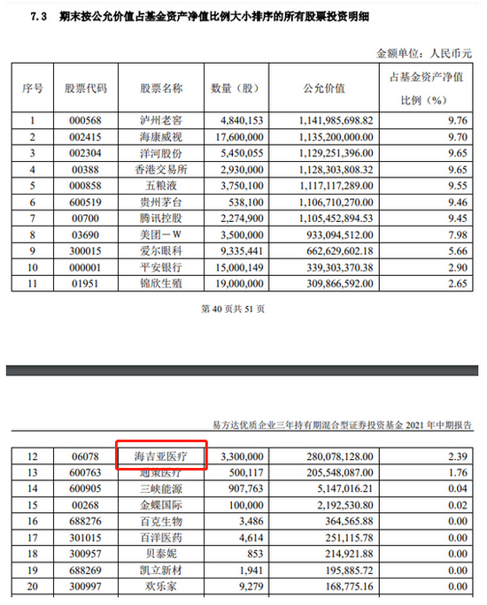 对比此前的定期报告,该基金上半年末对海吉亚医疗的持有约550万股,占比基金资产净值0.52%,持股数量较2020年末有所增加。