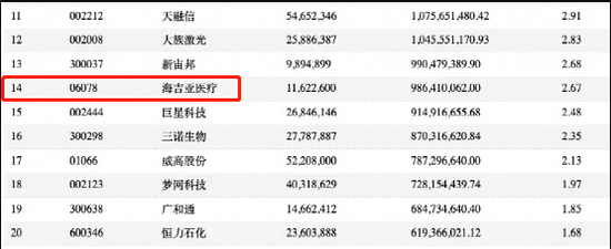 根据睿远成长价值基金的半年报来看,其持有海吉亚医疗约1162.26万股,持股占比基金资产净值的2.67%,排名第14位。