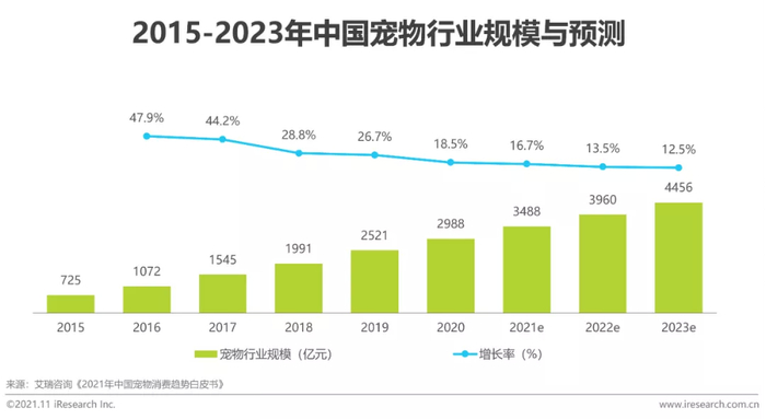 艾瑞咨询:2020年我国宠物经济规模已经接近3000亿元,未来三年保持约14.2%的年复合增长率