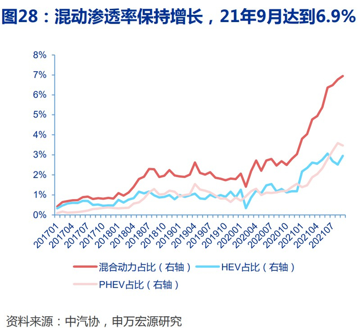 远期看,真实需求将支撑市场渗透率稳步提升,HEV渗透率有望超过18%。