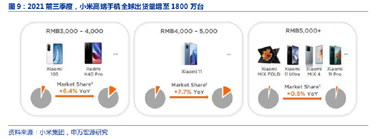 2021年前三季度,小米高端手机全球出货量增至1800万台,出货占比超过12%,高端化战略已初见成效。