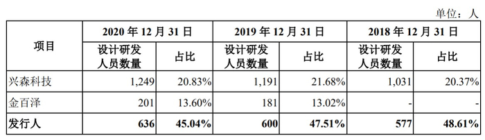 报告期内,一博科技的设计研发人员数量占比分别为48.61%、47.51%以及45.04%。