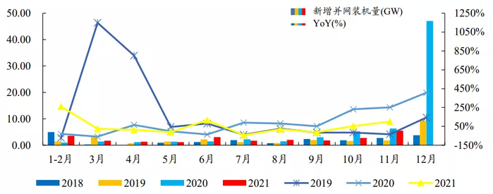 近两年风电抢装推动国内新增并网量大幅增长
