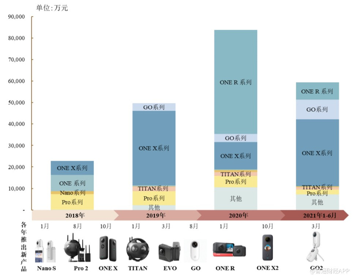 而ONE R系列产品结合模块化技术,可便捷更换镜头,与此同时还具备5米裸机防水功能,可实现智能跟拍、“子弹时间”、“隐形自拍杆”等特效。该系列产品于2020年1月推出,2020年和2021年上半年的销售收入占公司总收入的比例为57.91%、13.48%。