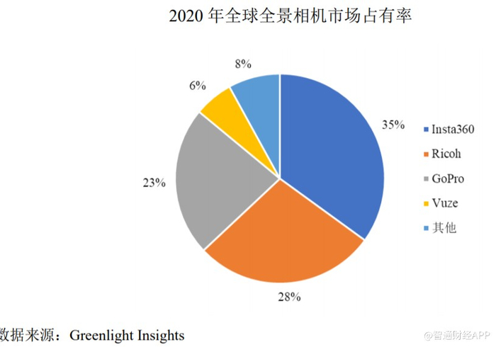 经过多年的积累,凭借先进的研发技术及产品优势,影石创新已成长为全球全景相机行业的领先企业。根据Greenlight Insights的数据显示,2020年该公司品牌“Insta360 影石”全景相机全球市场占有率35%,排名第一。除了全景相机外,公司积极打造产品组合,已将产品线延伸至运动相机、全景运动相机、专业VR全景相机等。