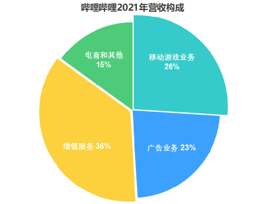 因此,在国内游戏监管、教育双减等大背景下,游戏业务虽然是B占的主力,但未来增速可能并不会很好看。相反,更能增加用户粘性的增值服务、增速更快的广告服务以及电商服务等,或是B站接下来需要重点发力的区域。