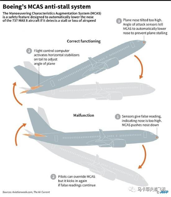 那咋办呢?波音这种百年巨头,有全世界最优秀的工程师队伍。他们给这个bug打了个补丁,给飞机的飞控系统加了个程序,叫机动特性增强系统(MCAS)。