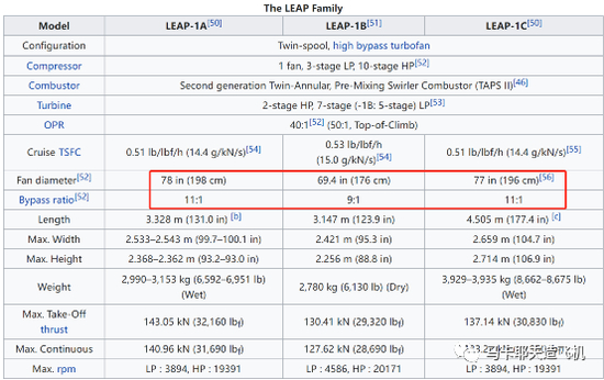 波音用的Leap-1B发动机,相比空客用的Leap-1A和和商飞用的Leap-1C,涵道比是最小的,只有9,另外两家都是11。也就是说,CFM供给波音的发动机,也是苗条款的。不过问题不大,瑕不掩瑜,这都是小让步。