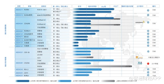 另一款产品ABSK091,是FGFR亚型1、2及3的高效及选择性抑制剂。试验初步显示 ABSK091在 FGFR畸变的多个实体瘤中具有抗肿瘤活性。和誉正在初步开发 ABSK091 用于治疗多种实体瘤,包括但不限于尿路上皮癌、胃癌、胆管癌及肺癌。