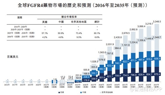 从市场规模来看,弗若斯特沙利文预期2025年到2030年全球FGFR4抑制剂市场将会由2.32亿美元达到24.35亿美元,年复合增速高达60.1%,全球FGFR4抑制剂市场会迅速扩张。
