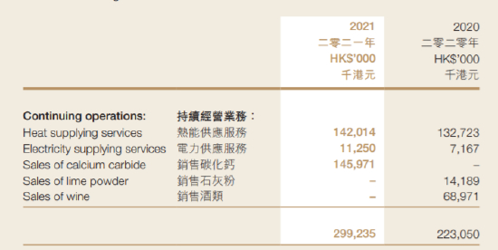 这家称做“信阳毛尖”的港股上市公司真可谓“改名狂魔”,公司于2021年5月2日在港交所主板上市,主营业务为润滑油脂和防腐涂料,目前公司为一家煤相关化工及生物化工原材料制造及供货商。根据2021年财报,公司核心业务包括:1)热能供应服务;2)电力供应服务;3)销售碳化钙;4)销售石灰粉;5)销售酒类。不过,2021年中期,公司石灰粉和酒类已经没有产生任何收入。