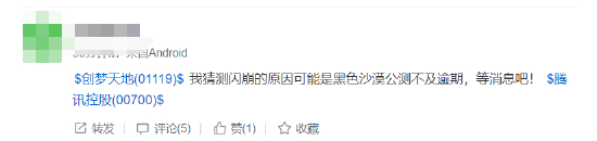 对于创梦天地暴跌,股民在社交平台纷纷表示,“有内幕消息”,“有股东爆仓”。