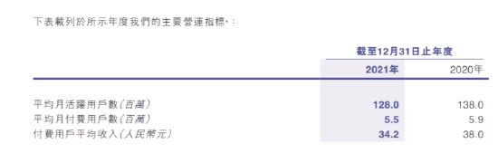 同时,公司用户流失严重,公司平均月活跃用户自2020年的1.38亿人减少至2021年的1.28亿人;2021年,公司平均月付费用户较2020年由590万减少至550万,付费用户平均收入由2020年的人民币38元下降至2021年的人民币34.2元。
