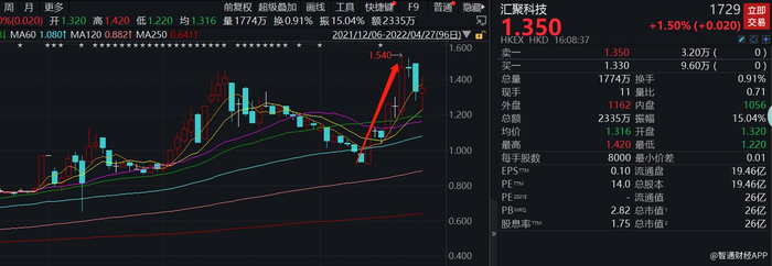 受此消息刺激,汇聚科技股价在4月20日大涨17.2%,此后股价连续大涨,仅6个交易日便升至1.54港元每股,涨幅65.59%,创下历史新高,但这或许并非终点。