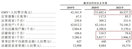 同期,订单总数分别为0.675亿、1.175亿、0.853亿,平台GMV分别为423.42亿元、516.82亿元、405.27亿元。