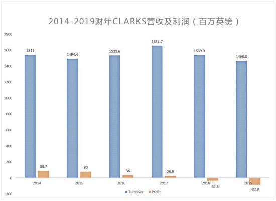 在2018财年,Clarks的税后亏损达到了3100万英镑,2019财年,亏损更是达到8200万英镑。