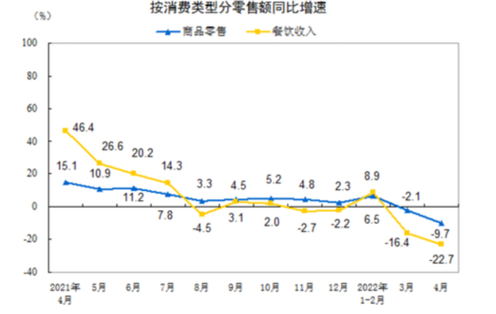 2022年3-4月的社会零售额的负增长预示消费跌至冰点,疫情重挫经济及消费者收入预期的改变,大家不愿意多消费。