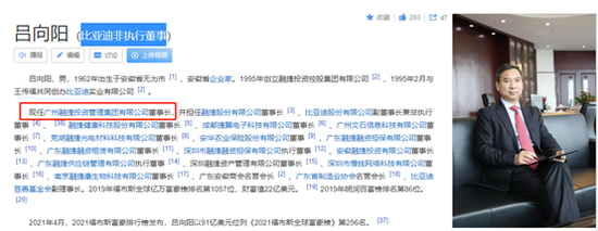 公开资料显示,吕向阳除了比亚迪非执行董事的头衔,还是现任广州融捷投资管理集团有限公司董事长。并担任融捷股份、融捷健康CEO。