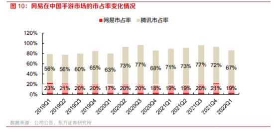 再说国内,尽管目前国服版的《暗黑》推迟上线时间未知,但该游戏经过多年准备,未来上线应该问题不大。加之国内目前环境再度转松,本月再度发放了第二批游戏版号,未来对游戏行业仍有持续的利好因素。网易在国内的市场份额一直比较稳定,2022Q1市占率19%,环比略下滑2%,但相比腾讯5%的下滑度,韧性较强。