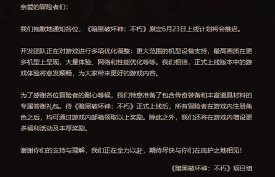 华盛资讯,众多游戏迷期待的网易手游大作《暗黑破坏神:不朽》(国服),在即将和玩家见面(原计划6月23日)时,却毫无征兆地发布了延期上线通告。这款由暴雪公司开发的游戏大作,已经全球风靡超过25年,积累了众多玩家粉丝,经久不衰。