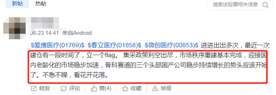 其次,据市场分析,集采政策利空出尽,市场秩序重建基本完成,迎接国内老龄化的市场稳步加速,骨科赛道的三个头部国产公司稳步持续增长的势头应该开始了。不急不躁,看花开花落。值得注意的是,微创医疗涨16%,春立医疗涨15%。